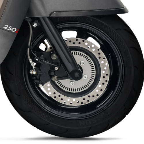 Front and rear wheels feature powerful disc brake calipers with ABS technology for unbeatable braking performance.