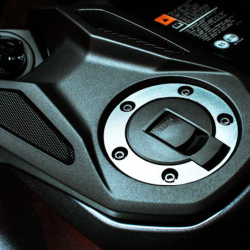 Amplifier grilles are specially designed with perforated openings above the fuel tank to accentuate the high frequency sounds of the engine, delivering an exhilarating sound of speed right to the rider’s ears.