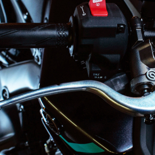 The Brembo radial master cylinder delivers a linear pressure supply to the four-piston calipers on the dual 298mm front discs, providing outstanding braking performance with fingertip control.